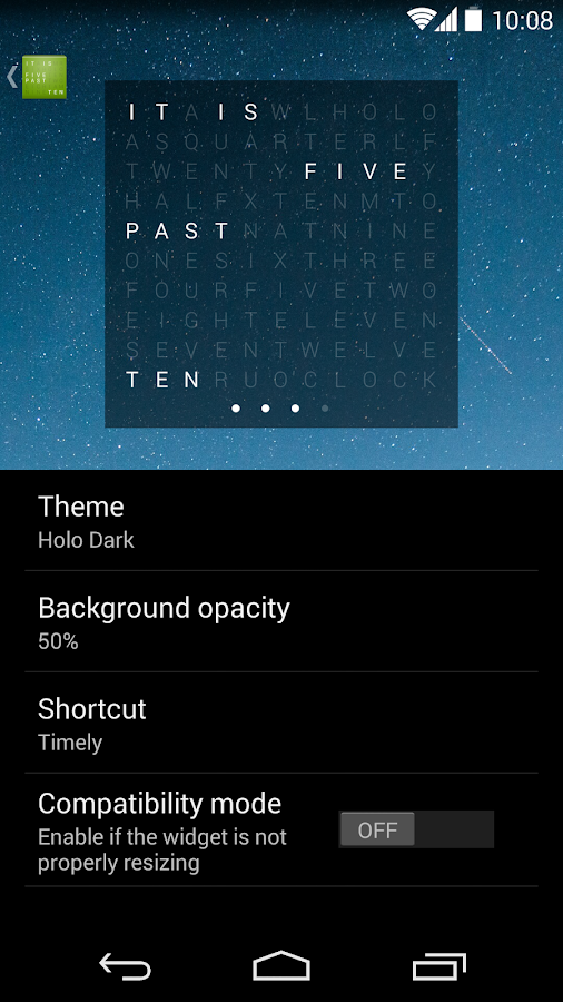 As a convenient way to keep an eye on the current time and as a Daydream alternative for Android < 4.2 users, the app can also be started from the launcher. The app can be viewed in full screen to entirely focus the clock display.