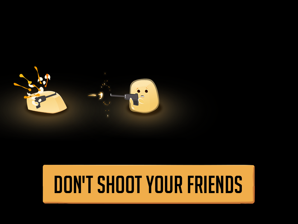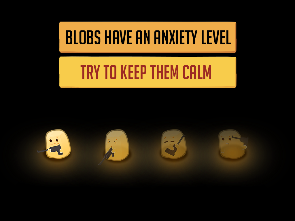 A bunch of glowing Blobs huddle in the dark, scared and armed. Dark shadows creep in and they must react quickly - is it a friend or foe?