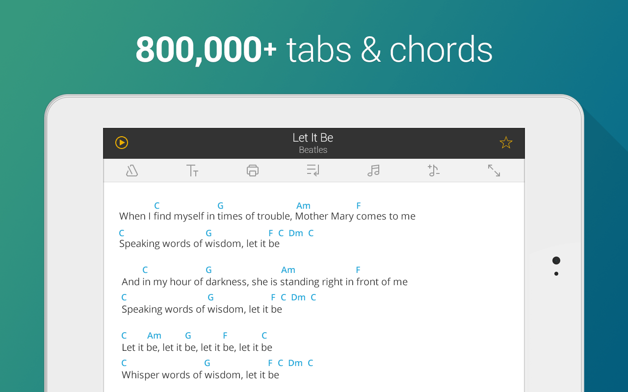 Ultimate Gitar Tabları & Akorları çevrimdışı bile kullanılabilir gitar ve ukulele akorları, sekmeler ve şarkı sözleri dünyanın en büyük mobil kataloğu versiyonu ile karşınızda. Akustik, elektrik gitar veya ukulele sevdiğiniz şarkıları çalmayı öğrenin.